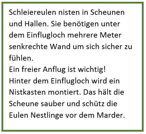 - Informationen für die SchleiereulenkastenbesitzerInnen zu Aspekten wie